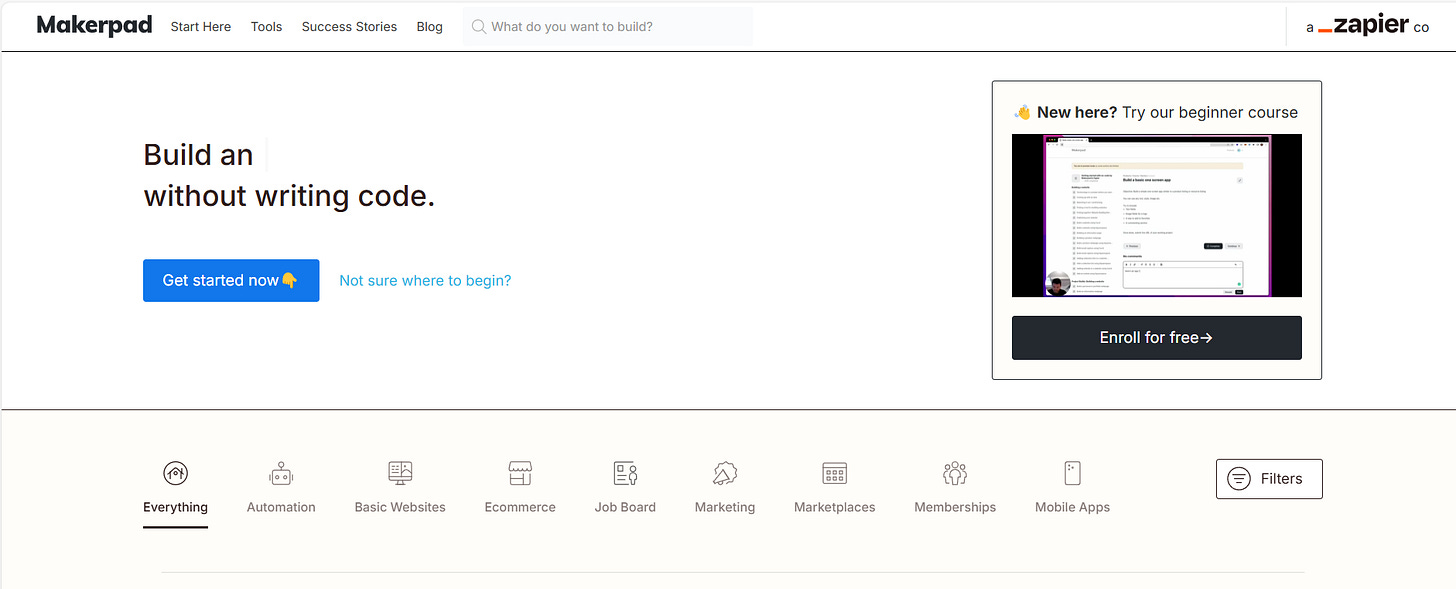 Instead of just telling people about these tools, he decided to create simple, step-by-step tutorials showing how to build real projects using no-code tools. That’s how Makerpad started.